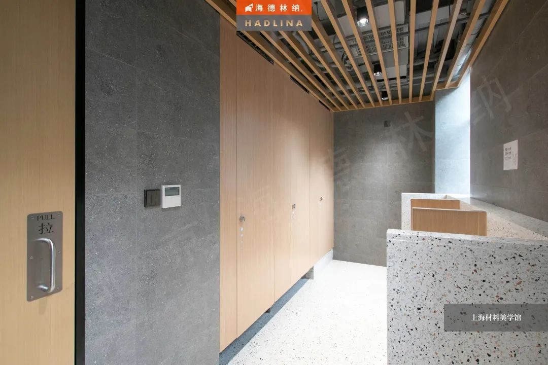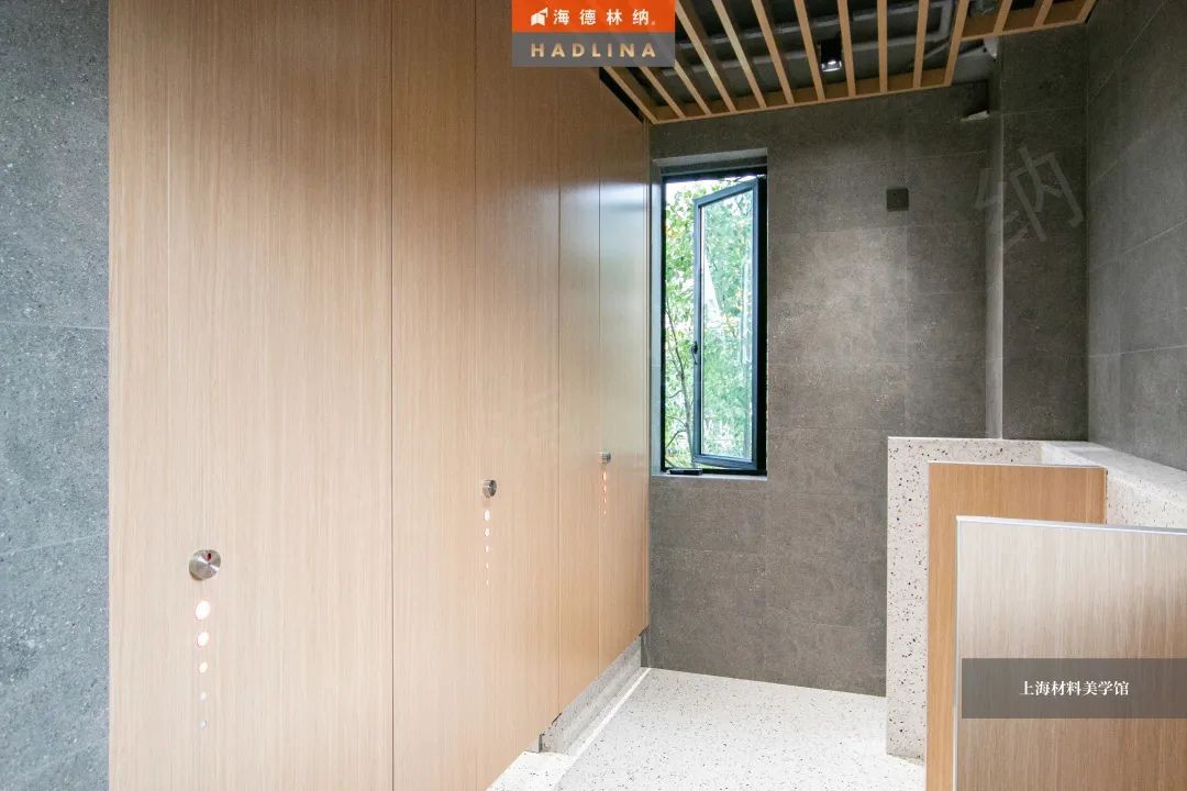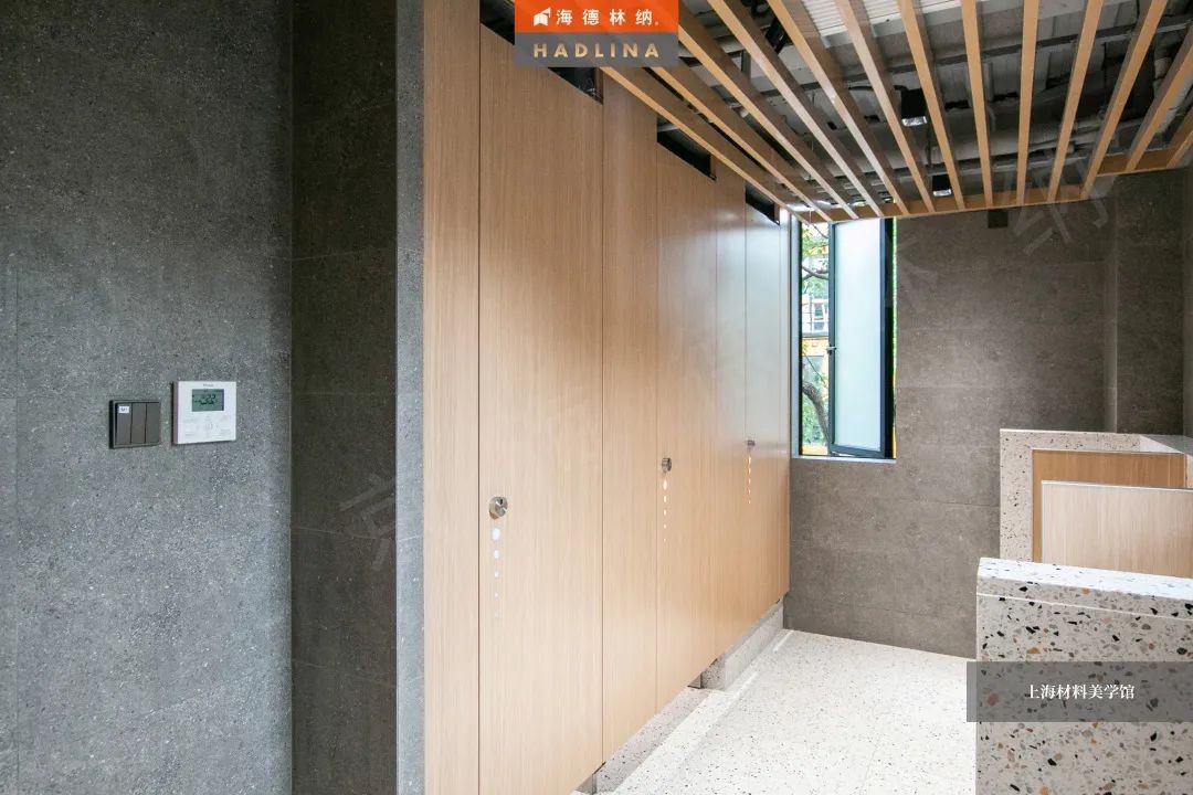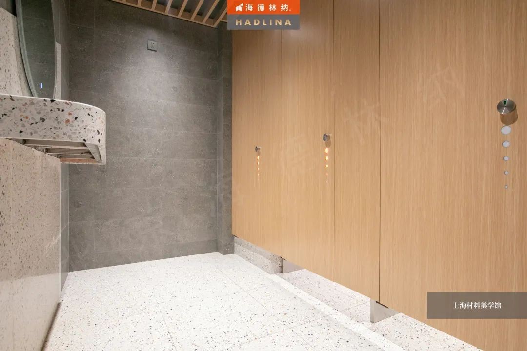 海德林納?遵循著“集中高品質,彰顯高價值”的企業理念,將產品與藝術結合,不斷創新。上海材料美學館衛生間隔斷系統由海德林納?承建,該項目采用海德林納26mm厚度的隔斷板材,將空間合理劃分,線條流暢,風格簡約,線與面完美結合,美觀大氣,充斥著藝術之美,與上海材料美學館的理念相得益彰。