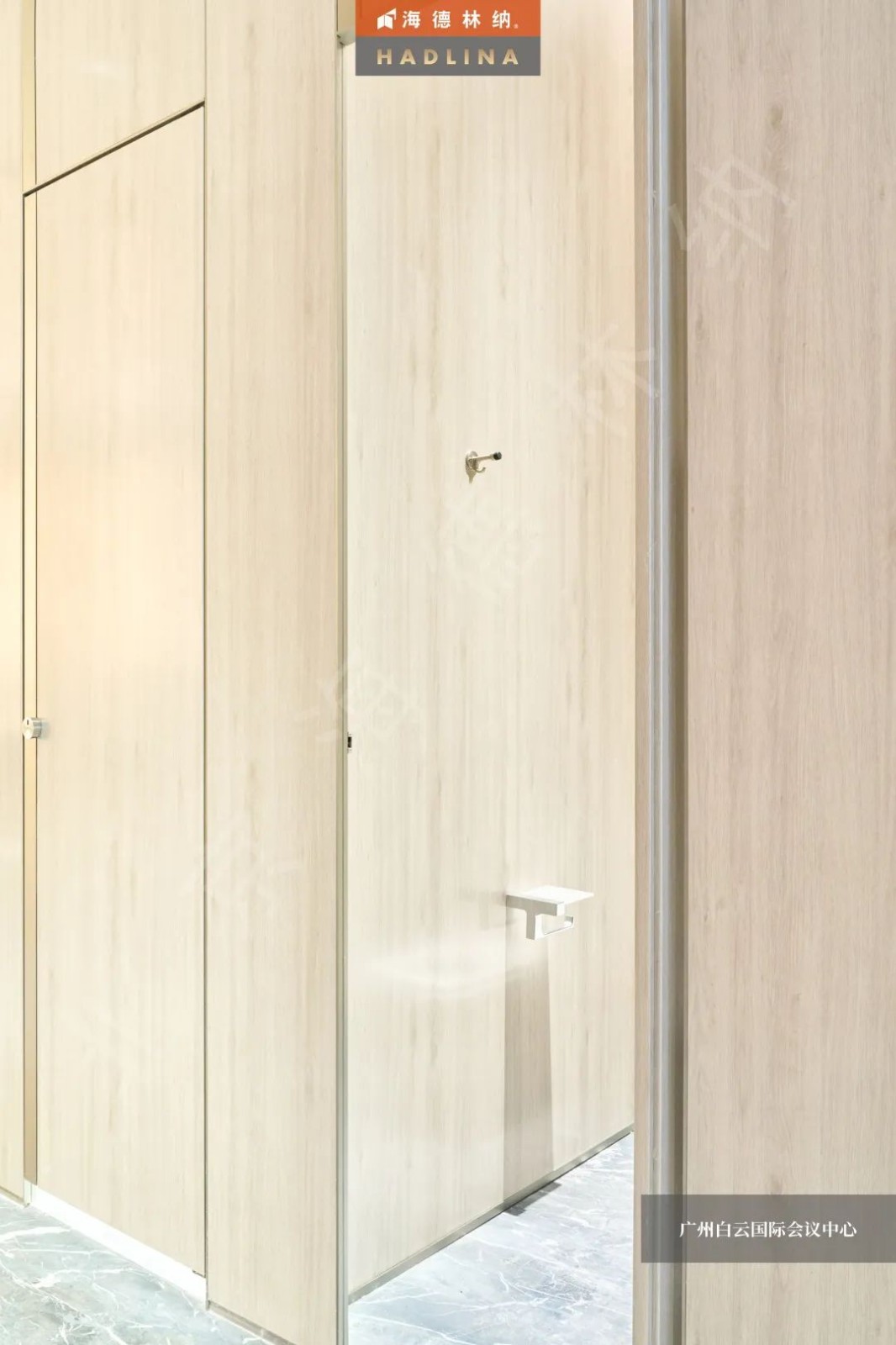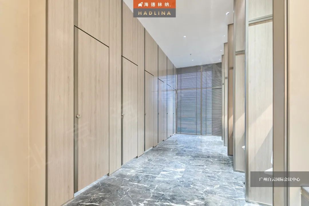 該項(xiàng)目采用了海德林納?天地式隔斷,將空間感縱向延伸,更顯寬敞明亮。正面搭配不銹鋼裝飾條,與大理石地面相互襯托,柔和的木質(zhì)感中和石材的硬朗,整體空間既有細(xì)膩優(yōu)雅,又現(xiàn)代時尚。