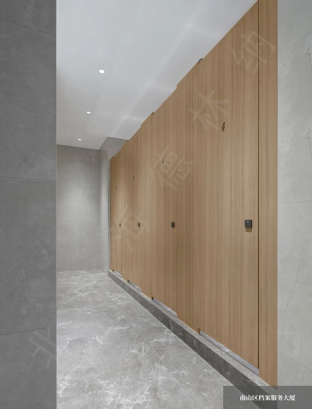 深圳檔案大廈衛生間隔斷采用原木色花紋,展現自然的魅力,恰到好處地融入空間,為整體增色不少。細膩的木紋質感,為使用者帶來溫暖與放松。在這溫暖的氛圍中,人們仿佛置身于自然之中,感受大自然的饋贈。