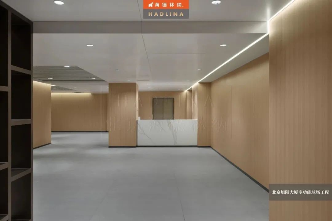 在北京旭陽大廈多功能球場的設計中,我們選擇了海德林納?木紋色金屬裝配式墻板,為這個現代城市空間帶來了獨特的視覺感受和卓越的功能性。